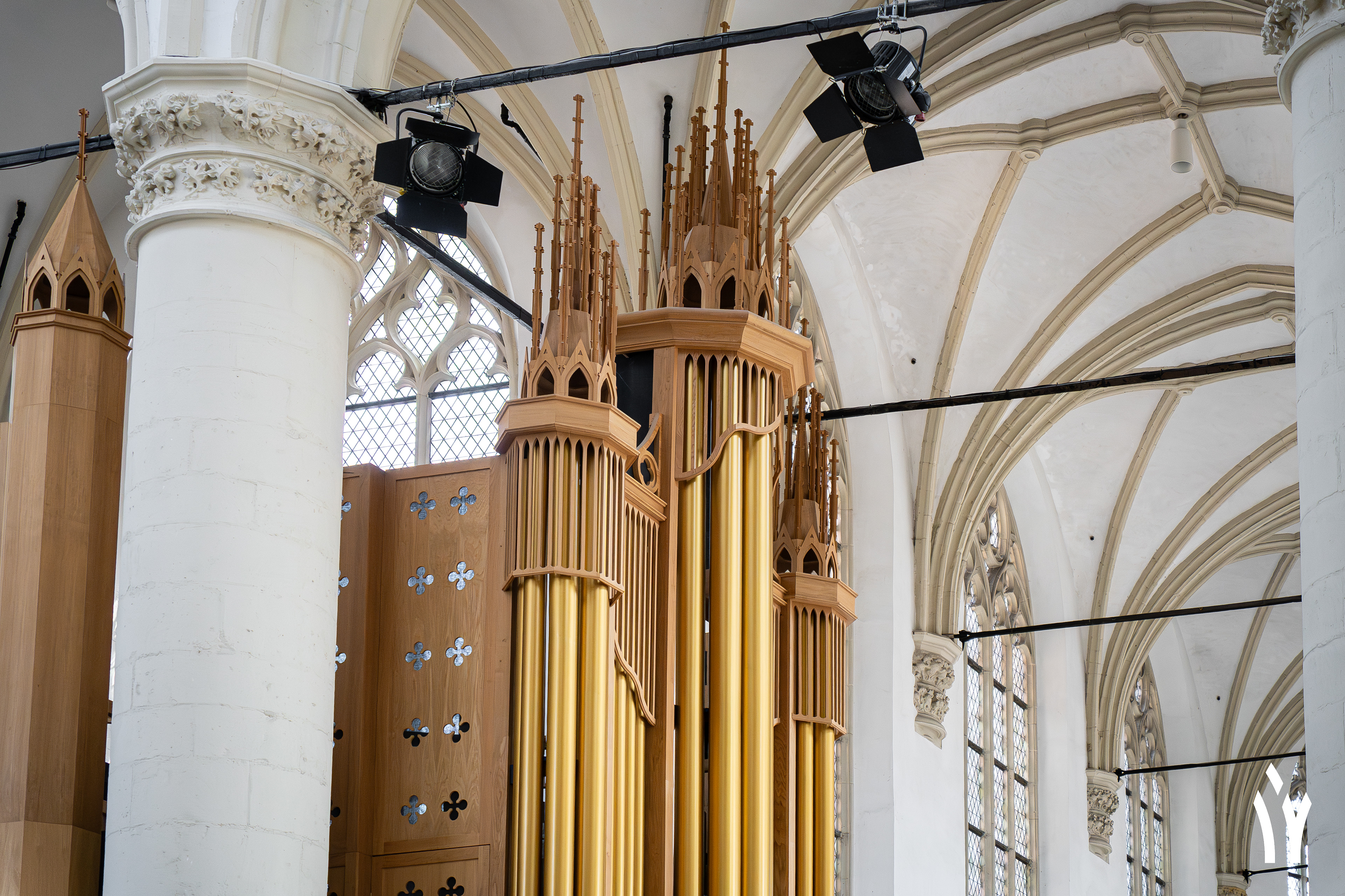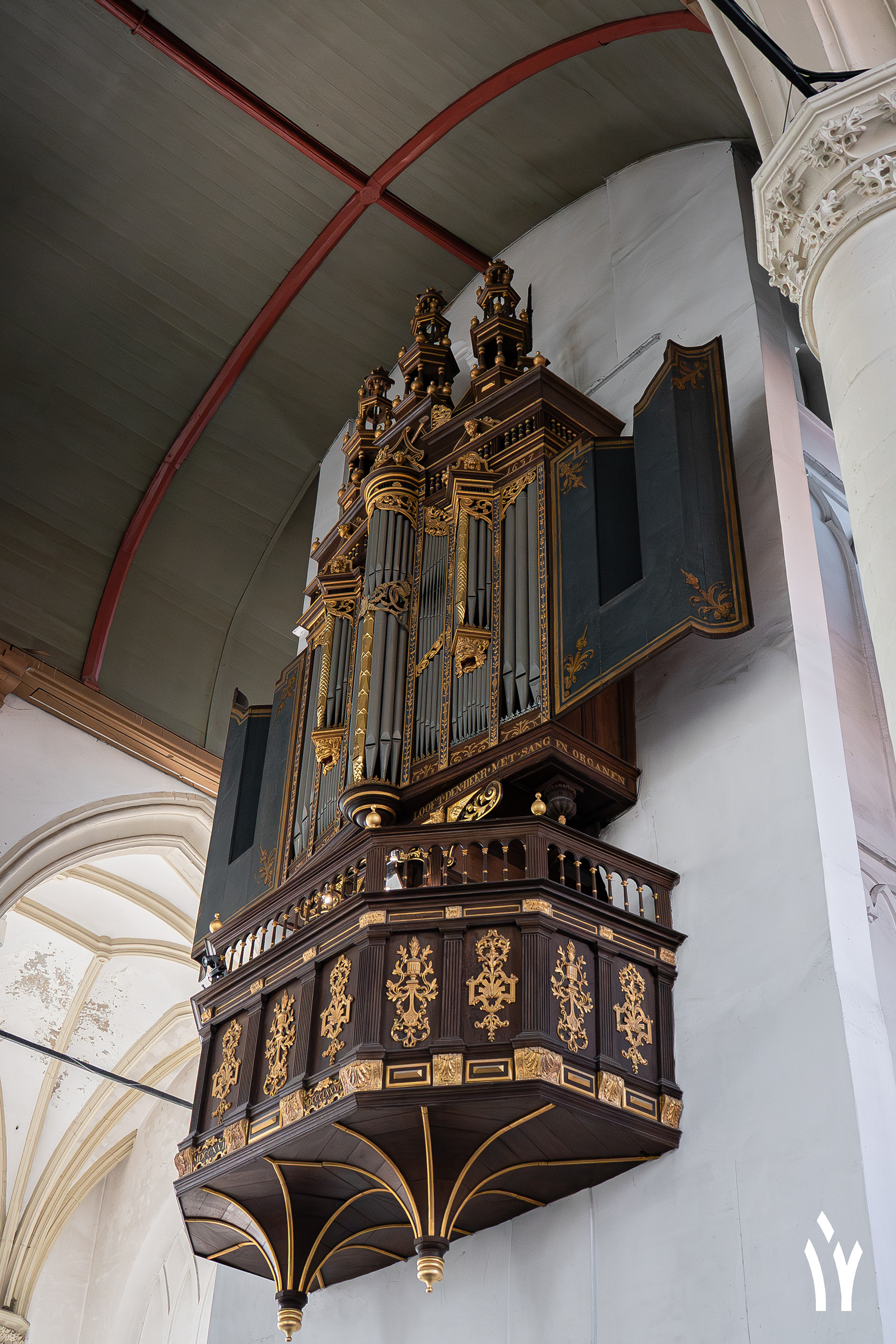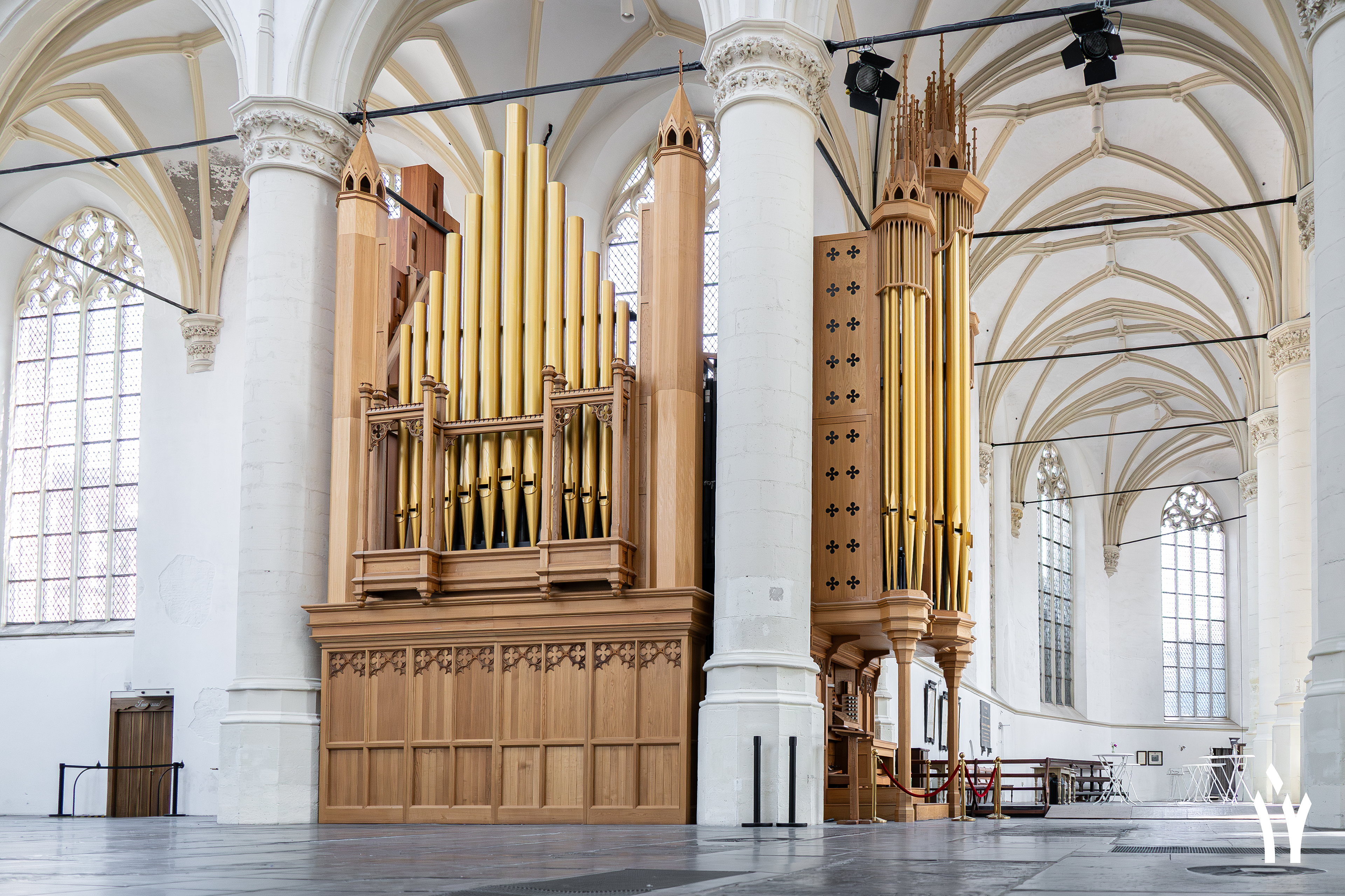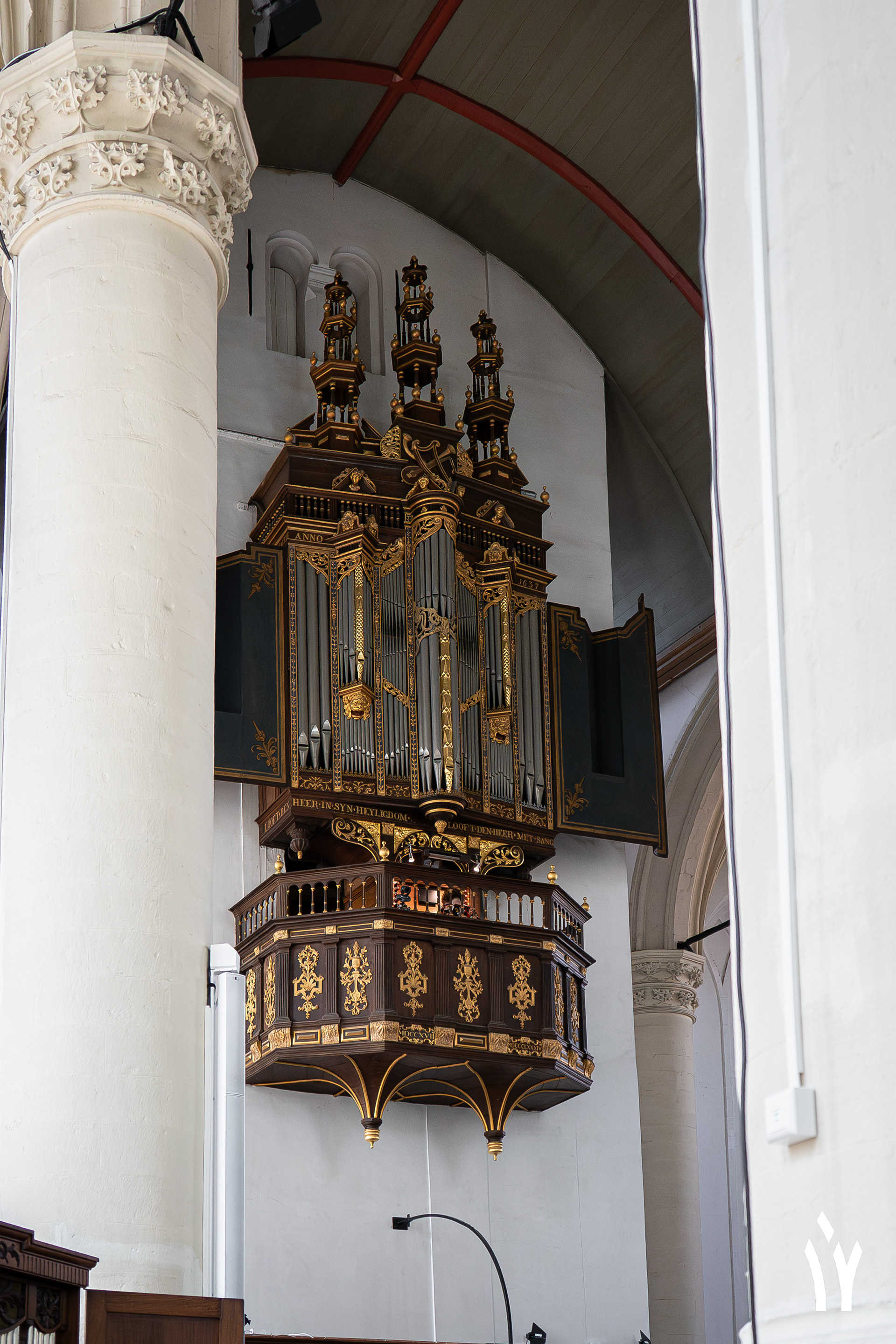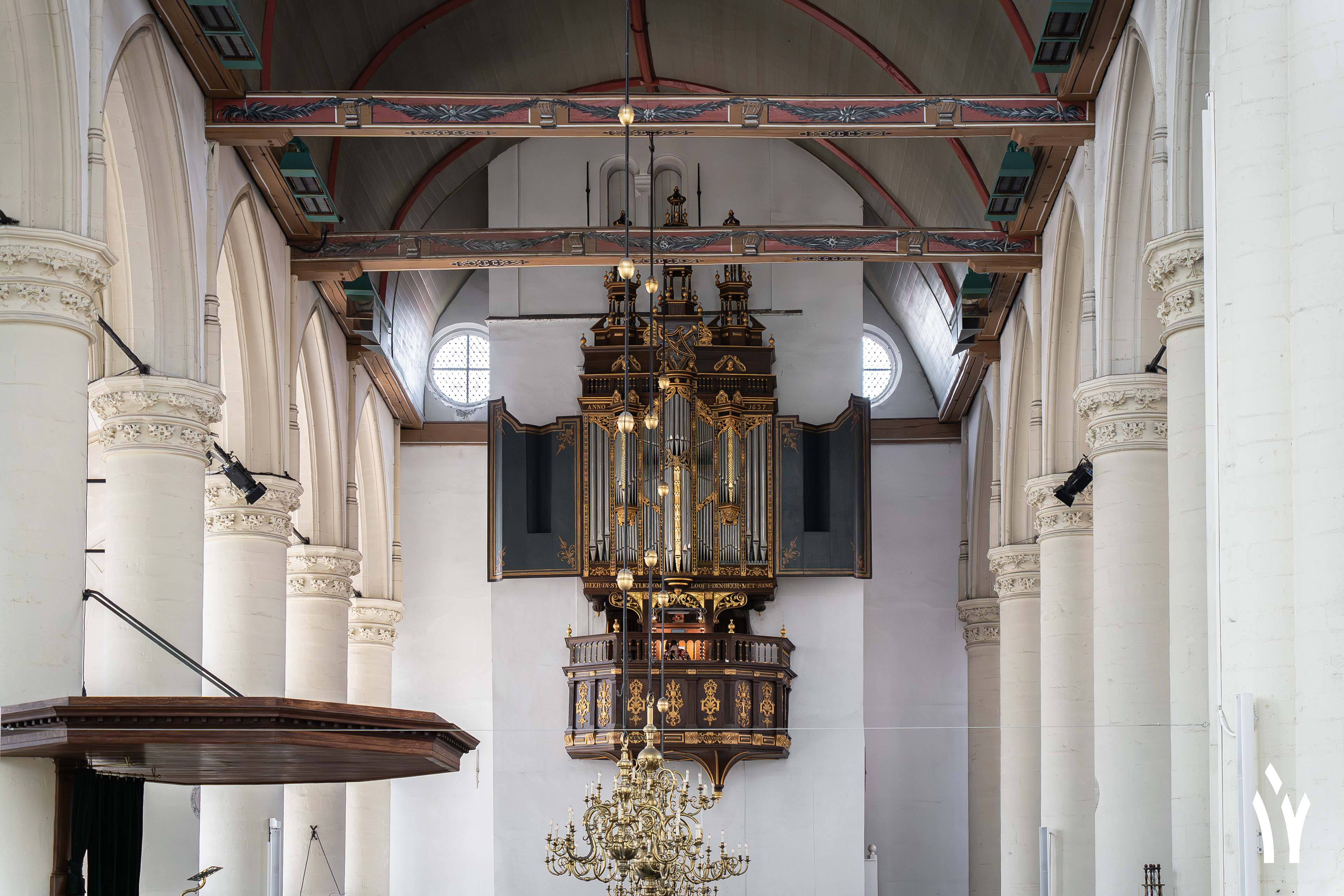 De Hooglandse kerk herbergt twee grote orgels. De oudste hiervan is het Van Hagerbeer orgel uit 1735. Hij breide toen het oude Swart orgel aanzienlijk uit en verplaatste dit naar de toren gevel. De laatste restauratie werd uitgevoerd door Ahrend. Hij bracht het orgel na een restauratie van Duyschot naar de situatie van Van Hagerbeer en stemde het orgel in Werckmeister III stemming en bracht het naar 415 Hz.