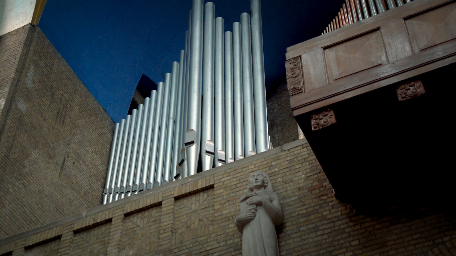 In een kerk met karakteristieke jaren ’30-architectuur klinkt het warme, tijdloze geluid van een Klais-orgel uit diezelfde periode. Bespeeld door Leander van den Bos.