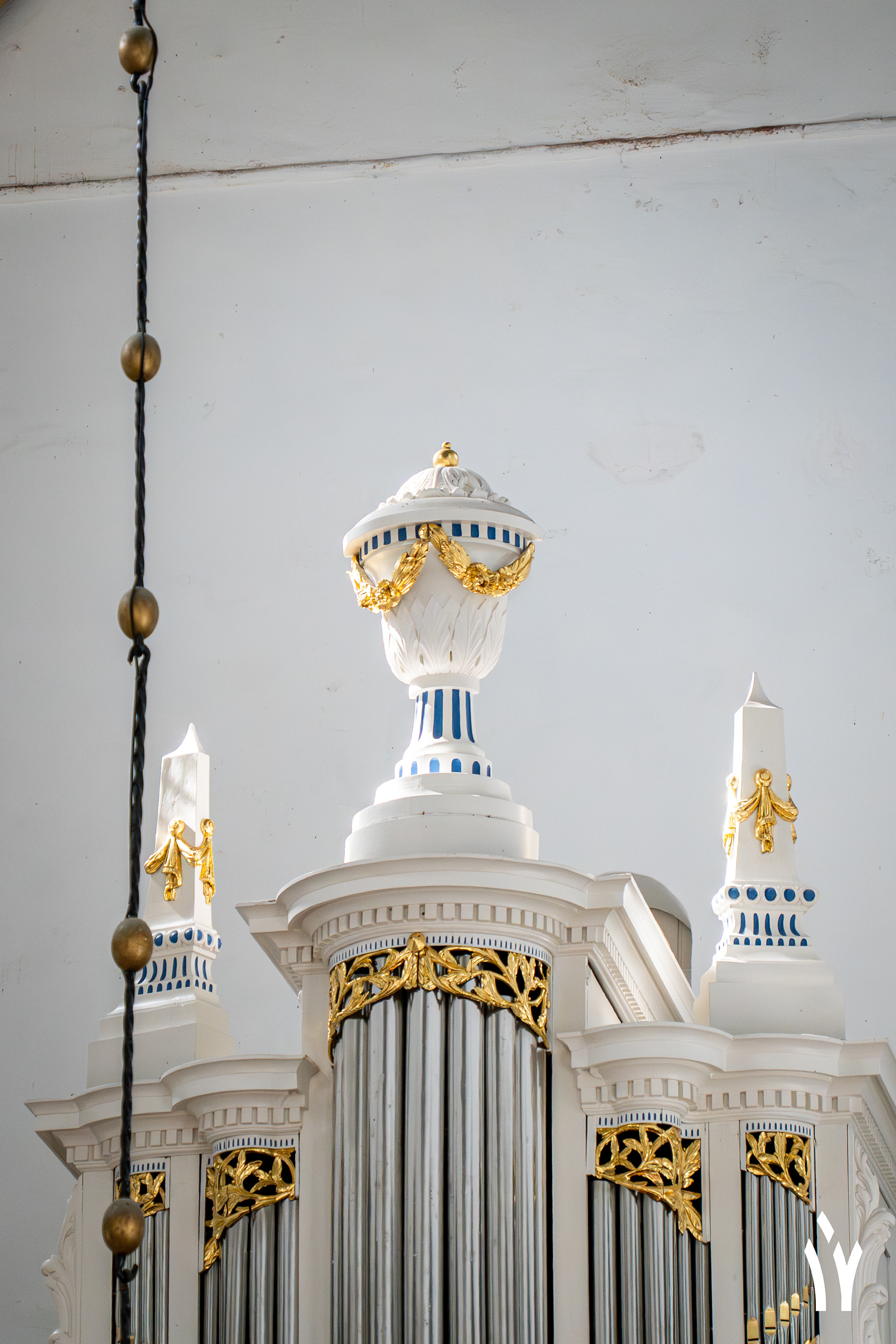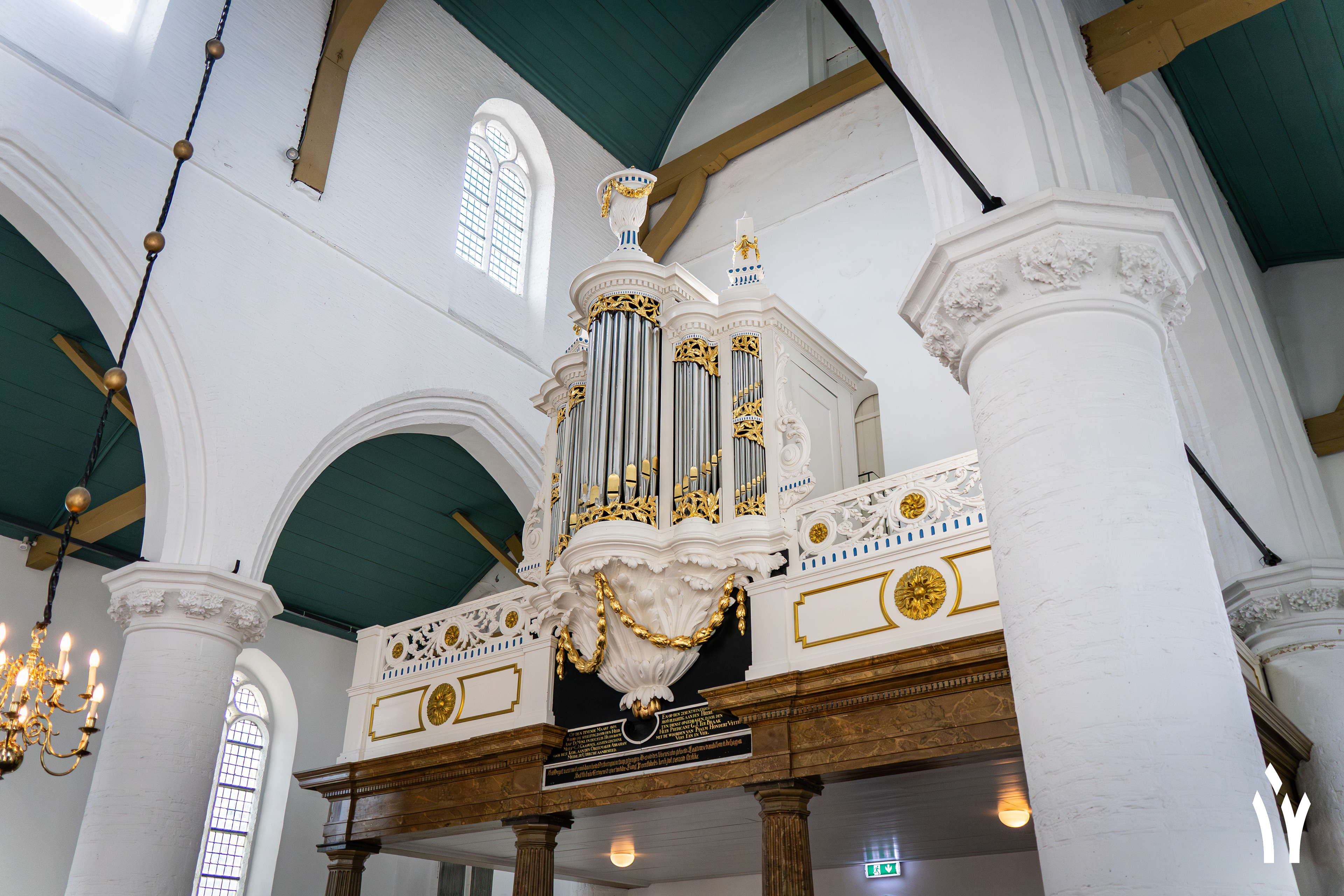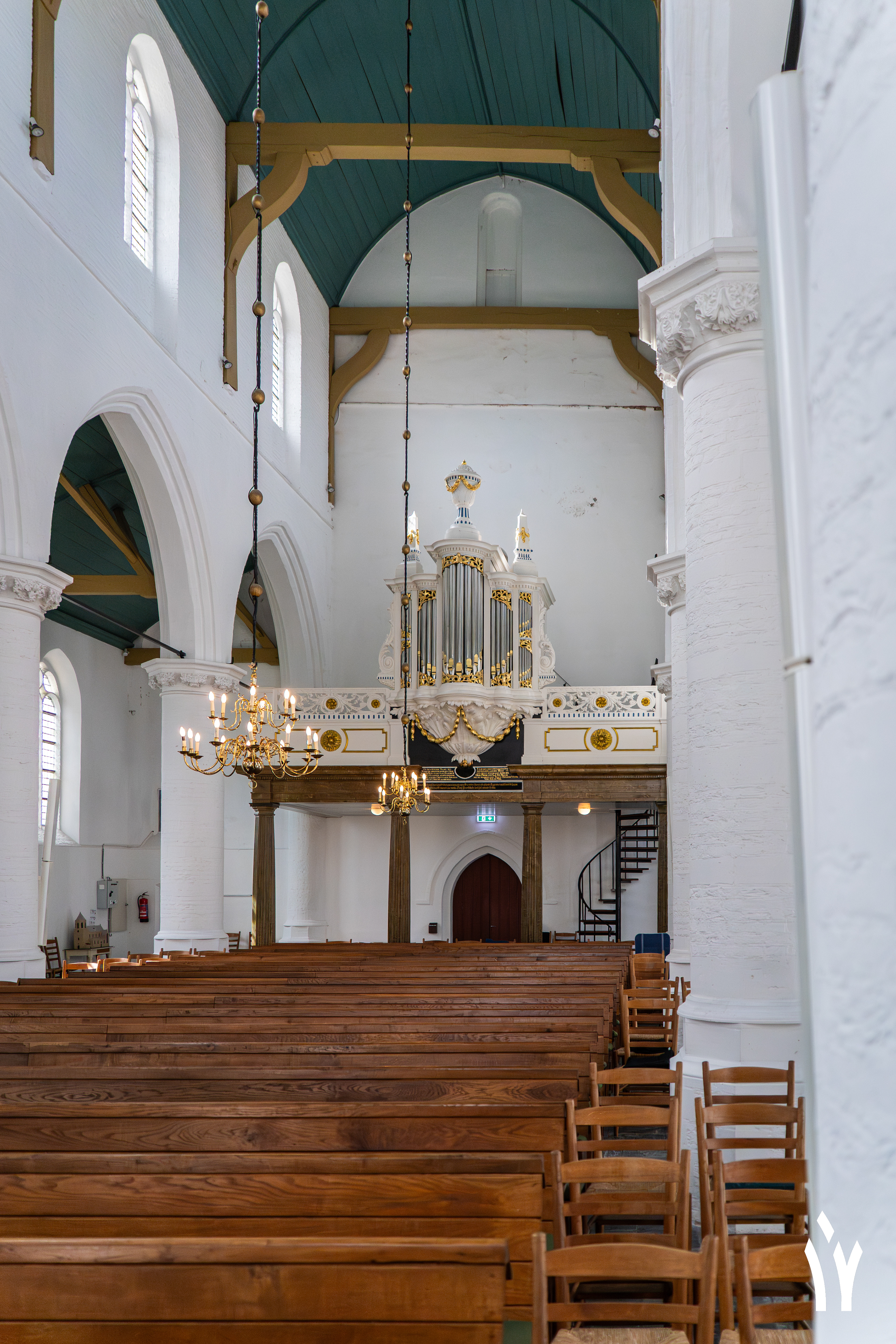 Sint Martinuskerk in Halsteren. Hier staat een blauw orgel Timpe orgel. Het werd in 1836 oorspronkelijk gebouwd voor de Sint Hiëronymus Aemilianuskerk van Veenhuizen. Sinds 1967 vult ze de galerij in Halsteren.